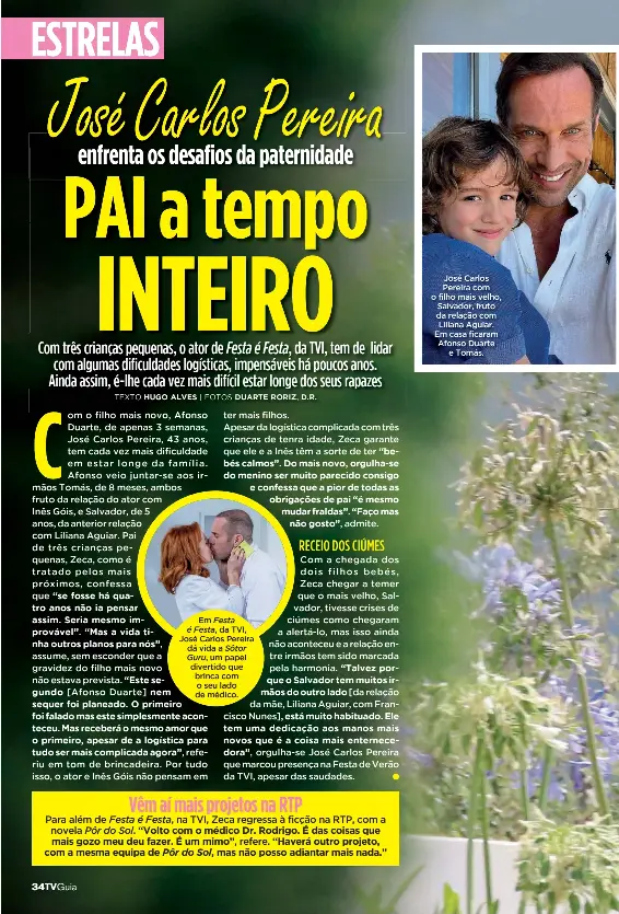 Inês Góis, e Salvador, de 5 anos, da anterior relação com Liliana Aguiar. Pai de três crianças pequenas, Zeca, como é tratado pelos mais próximos, confessa que “se fosse há quatro anos não ia pensar assim. Seria mesmo improvável”. “Mas a vida tinha outros planos para nós”, assume, sem esconder que a gravidez do filho mais novo não estava prevista. “Este segundo [Afonso Duarte] nem sequer foi planeado. O primeiro foi falado mas este simplesmente aconteceu. Mas receberá o mesmo amor que o primeiro, apesar de a logística para tudo ser mais complicada agora”, referiu em tom de brincadeira. Por tudo isso, o ator e Inês Góis não pensam em ter mais filhos.